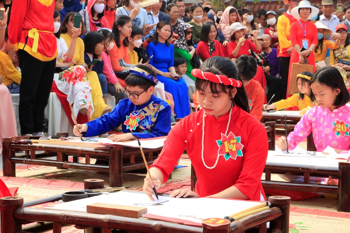 Phần hội thi viết thư pháp tại lễ hội do Phòng Giáo dục& Đào tạo huyện Thủy Nguyên tổ chức