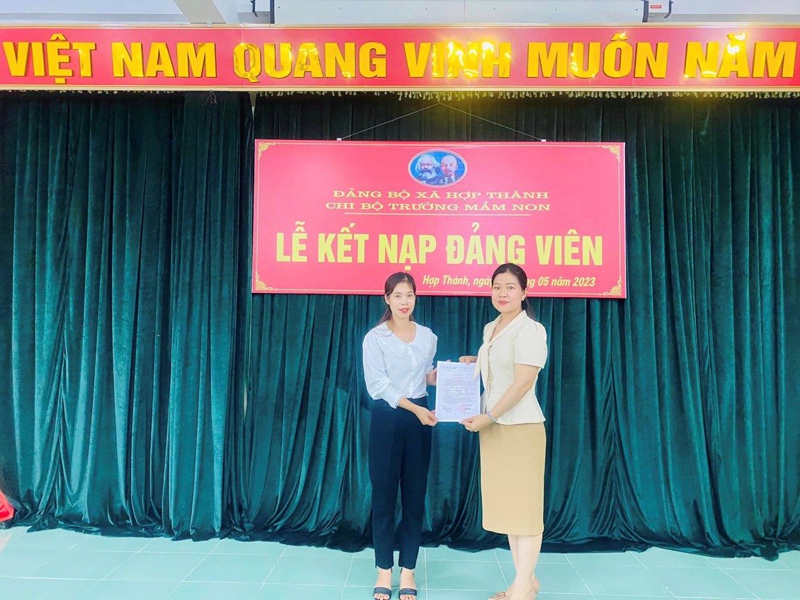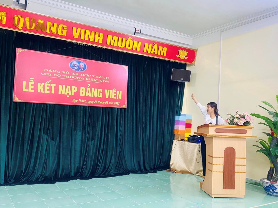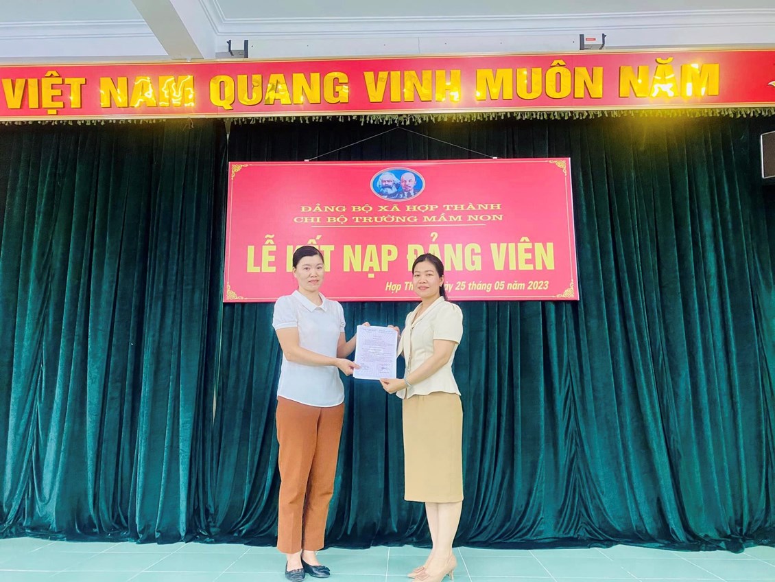 Chiều ngày 25/05/2023, Chi bộ Trường Mầm non Hợp Thành tổ chức lễ kết nạp Đảng viên mới cho 2 quần chúng ưu tú: Bùi Thị Thúy Hường và Bùi Thị Huyên.