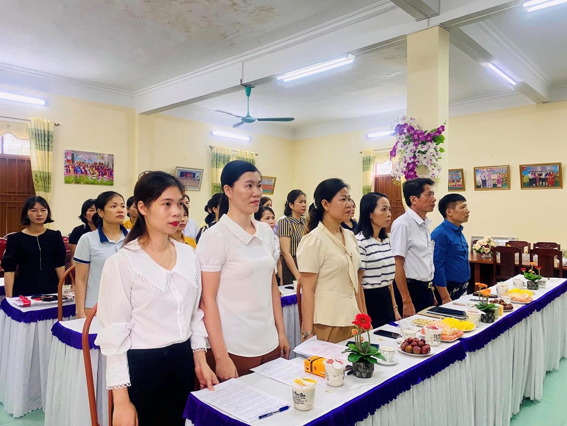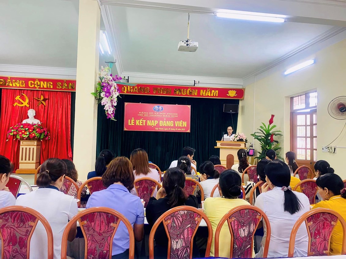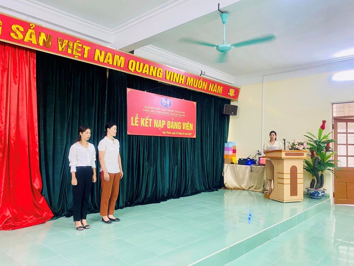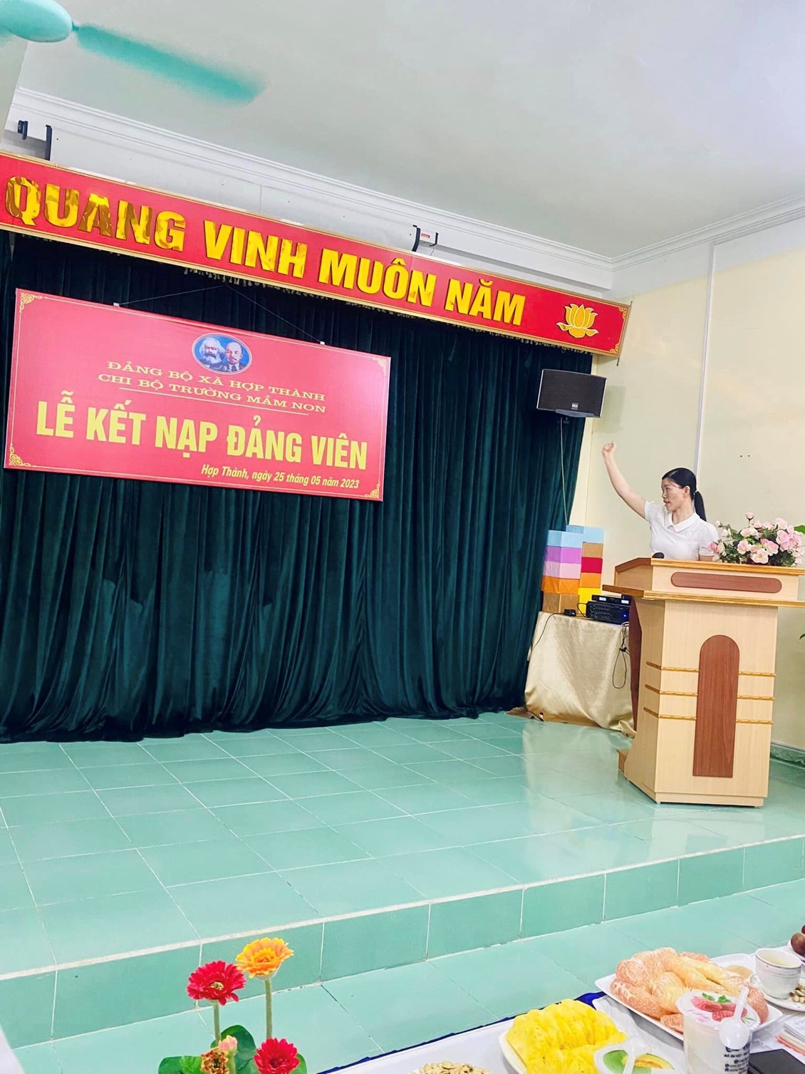 Chiều ngày 25/05/2023, Chi bộ Trường Mầm non Hợp Thành tổ chức lễ kết nạp Đảng viên mới cho 2 quần chúng ưu tú: Bùi Thị Thúy Hường và Bùi Thị Huyên.