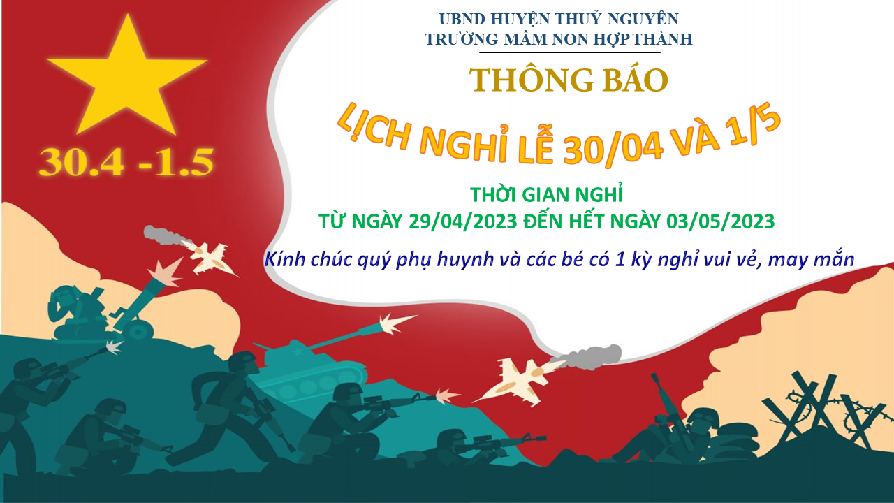 THỜI GIAN NGHỈ TỪ NGÀY 29/04/2023 ĐẾN HẾT NGÀY 03/05/2023