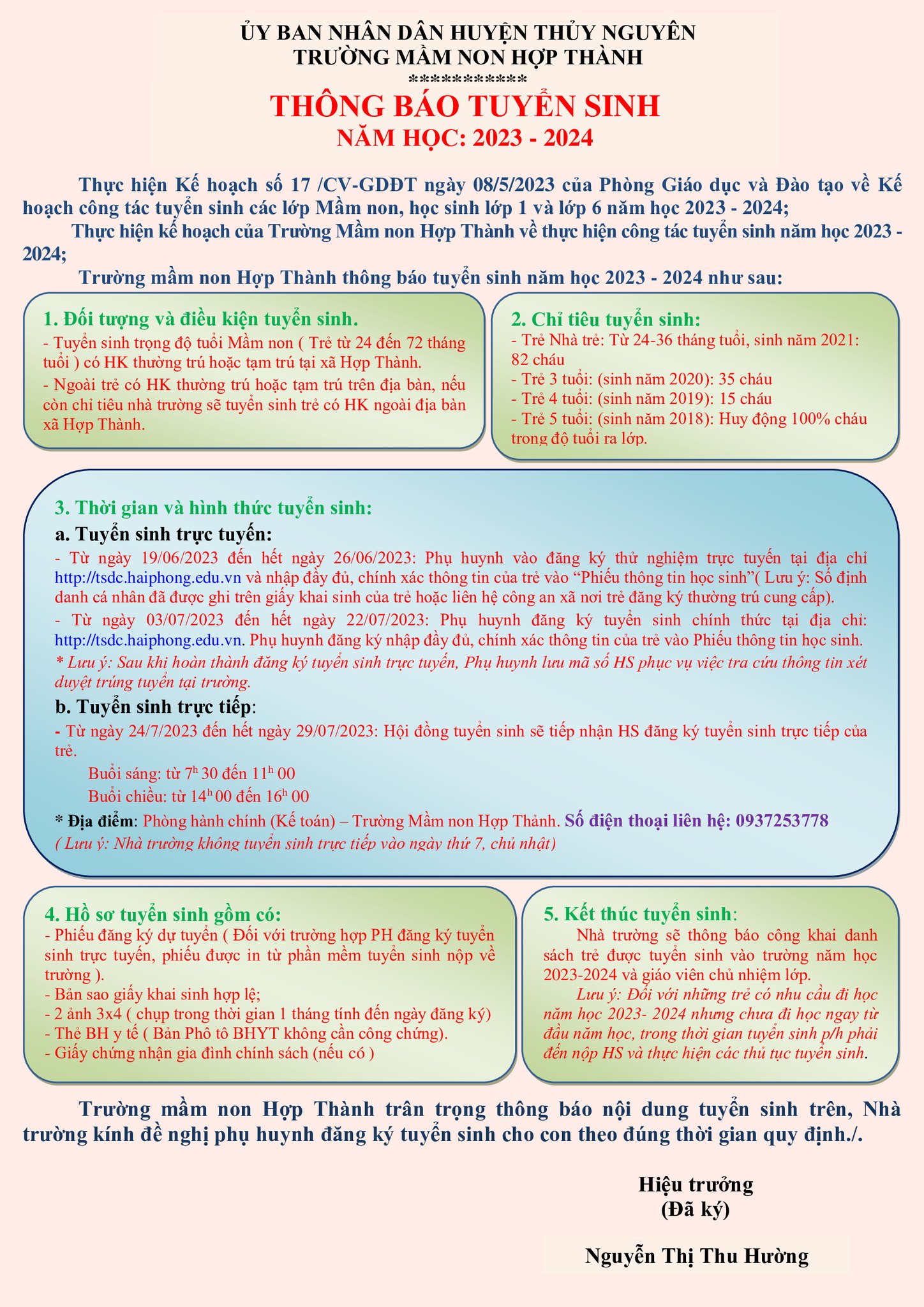 Trường MN Hợp Thành trân trọng thông báo: