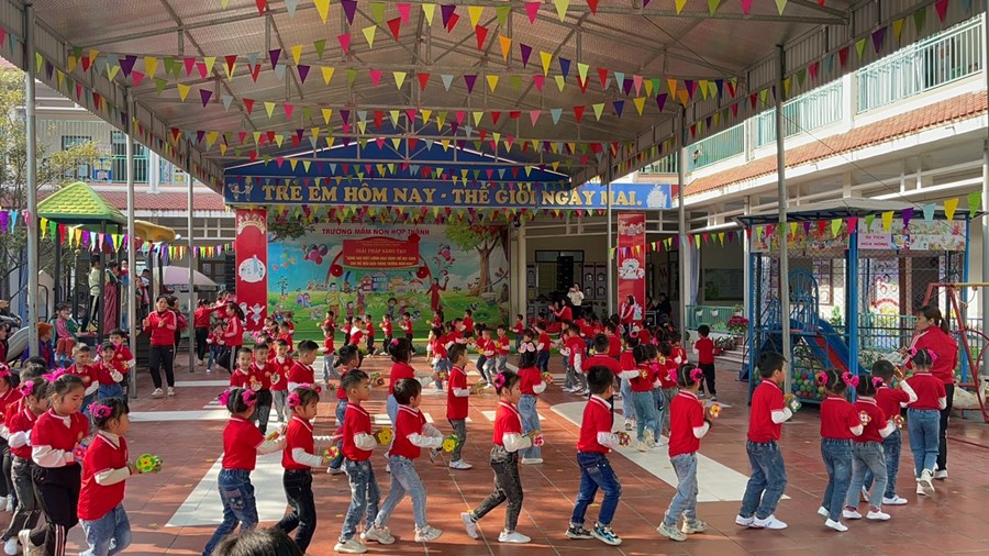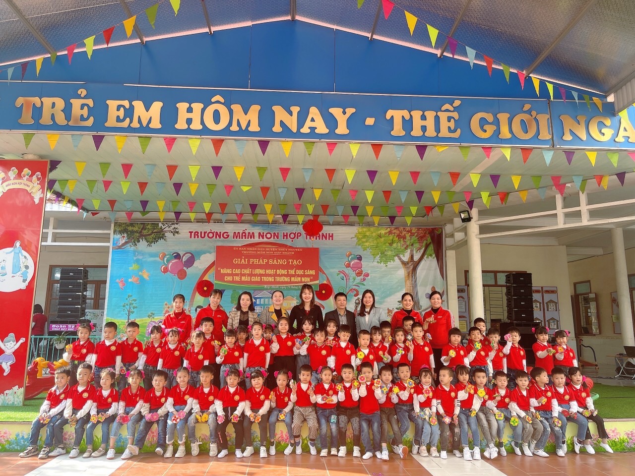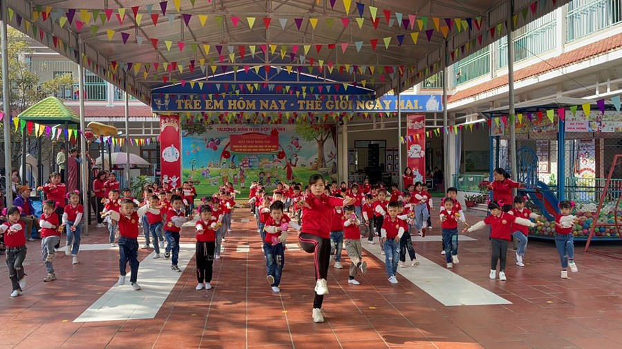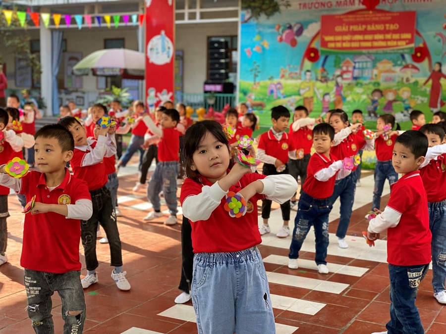 Căn cứ đặc điểm tình hình thực tế, Trường mầm non Hợp Thành phối hợp xây dựng kế hoạch thực hiện giải pháp sáng tạo: "Nâng cao chất lượng tổ chức hoạt động thể dục buổi sáng cho trẻ mẫu giáo trong trường Mầm non” năm học 2022-2023.